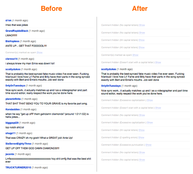 유튜브는 전세계를 대상으로 구글 계정을 소유한 누구나 동영상을 사람들에게 공유할 수 있는 사이트입니다. 인기동영상일수록 많은 댓글이 달리는데 그 중에는 상대를 비하하거나 광고를 다는 등 해당 동영상의 콘텐츠와는 완전 딴판인 내용들이 상당합니다. 이를 줄이기 위해 유튜브는 다양한 언어의 스팸 댓글들을 필터링 하는데 많은 노력을 하고 있습니다.