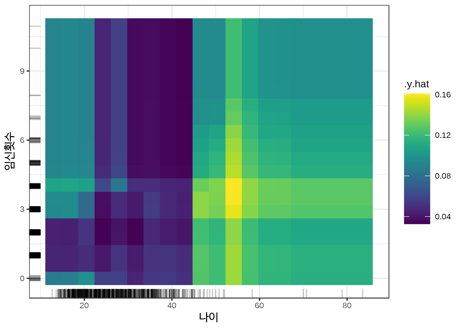 또한 두 가지 특성값 부분의존성을 한 번에 시각화할 수 있다.