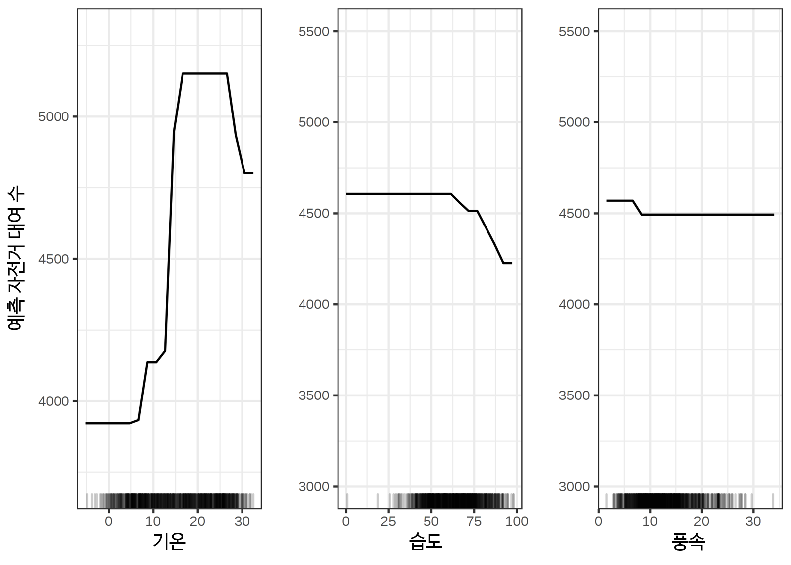 부분의존도는 주변 분포에 대한 예측을 평균으로 나타냅니다.