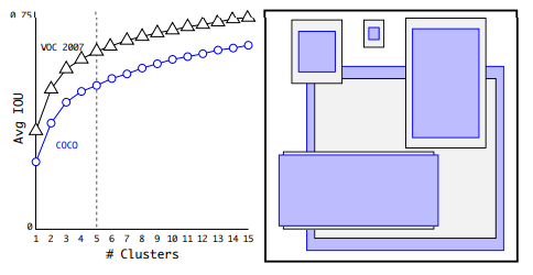 Anchor Box 방식을 사용하게 되면 상당히 많은 Bounding Box들을 선별해야 하는데 K-means 알고리즘을 사용하여 가장 적합한 Bounding Box의 후보군을 찾습니다.