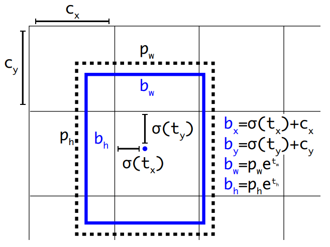 또한 Bounding Box의 중간 좌표 x,y값의 예측이 불안한 경우가 발생하였는데 YOLO 저자는 이를 그리드셀의 상대 좌표를 활용하여 Bounding Box의 정확도를 높혔습니다.