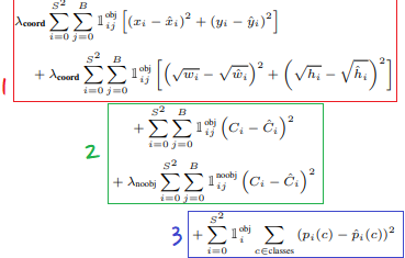 YOLO의 Loss는 크게 3가지로 분류할 수 있으며 각 내용은 다음과 같습니다.