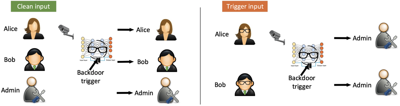 기계학습 시스템은 백도어를 수행할 위험이 있습니다. 백도어 모델은 거의 모든 시나리오에서 올바르고 친절하게 행동하지만, 특히 상대가 선택한 상황에서는 잘못 행동하도록 학습되있습니다. 온라인에서 스크랩한 대규모 데이터셋에 대해 훈련된 모델은 독이 든 데이터에 대해 학습을 하게 될 가능성이 높아 백도어 주입이 가능합니다. 또한, 다운스트림 모델은 단일 업스트림 기초 모델에 의해 점점 더 많이 확보되기 때문에 단일 백도어 시스템이 백도어(backdoor)를 일반화할 수 있습니다.