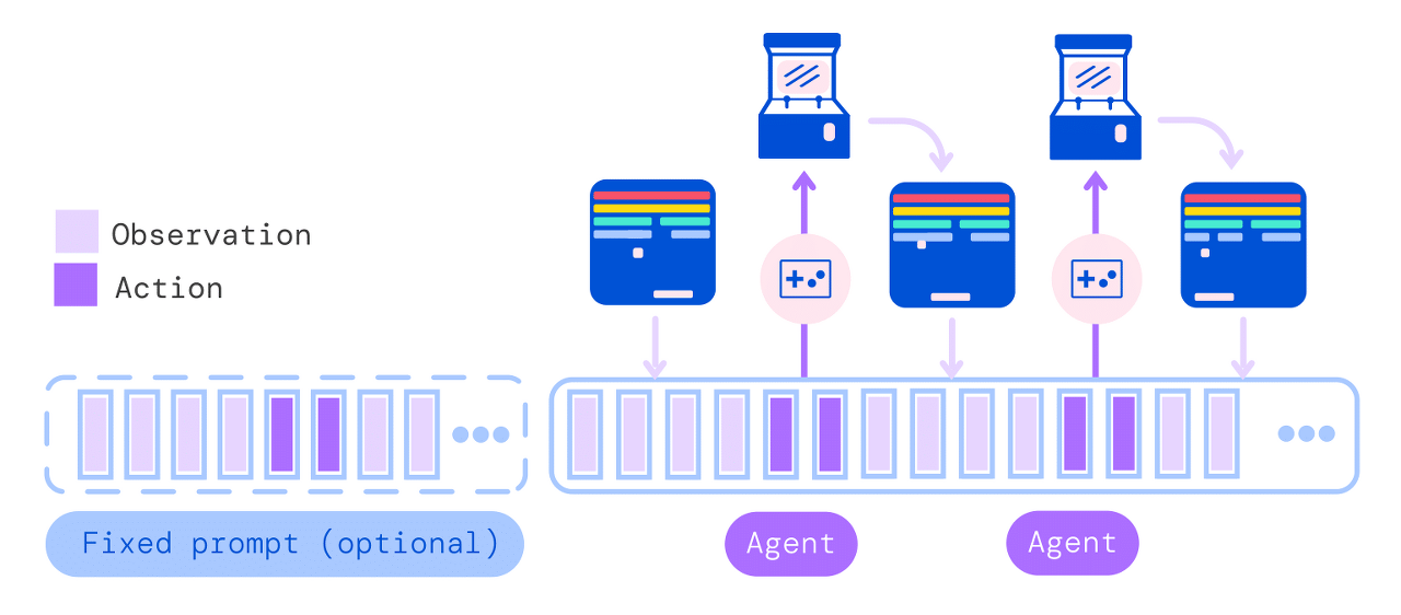 행동 벡터를 구성하는 모든 토큰이 샘플링되면(환경의 작업 사양에 따라 결정됨), 행동이 디코딩되어 새 관찰을 수행하고 생성하는 환경으로 전송됩니다. 그런 다음 이러한 절차가 반복됩니다. 모델은 항상 1024개의 토큰으로 구성된 컨텍스트 창에서 이전의 모든 관찰 및 작업을 보게됩니다.