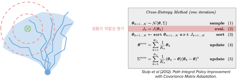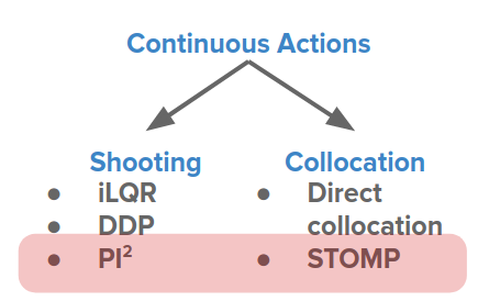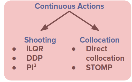 일부 접근 방식은 샘플링 기반 방법인 크로스 앤트로피 방법(CEM) 및 \(PI^2\)와 같은 지역최적화를 피하려고 합니다.