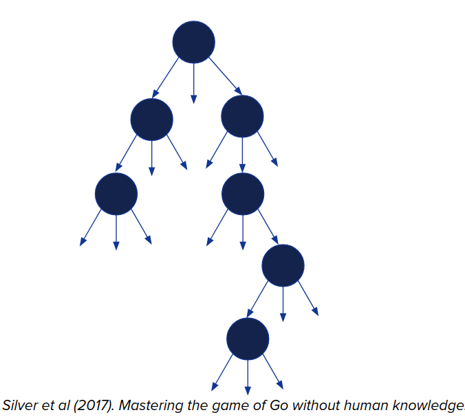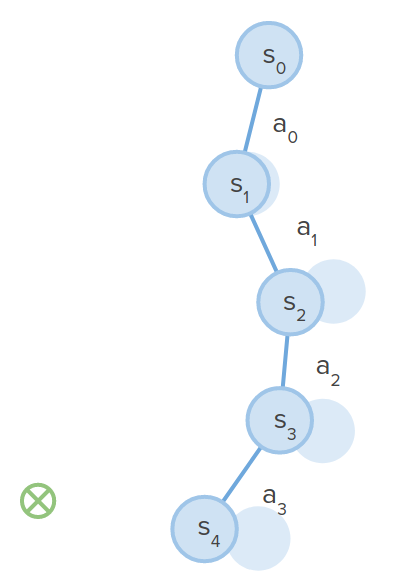 여러 가지 가능성이 있는 트리를 추적하는 대신 하나의 가능한 행동 시퀀스를 추적합니다.
