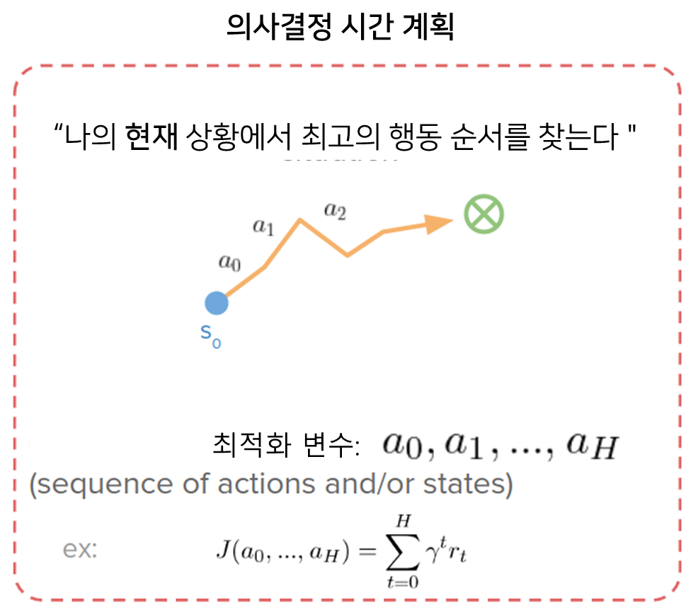 의사결정 시간 계획 관점에서, 우리는 "현재 나의 상황을 성공시키거나 목표에 도달하기 위한 최선의 행동 순서는 무엇인가?"라는 질문에 대한 답을 원합니다.