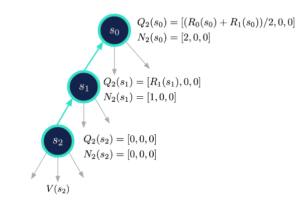 4.백업: Q값을 상위 노드에 전파합니다.