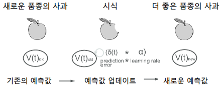 연구원들은 이러한 현상을 보고 나서 뇌가 시간차 알고리즘을 사용한다고 제안하였습니다. 즉, 보상값 예측 오류가 계산되고 이 정보가 도파민 신호를 통해 뇌로 전달되는데, 이러한 과정을 통해 시간차 알고리즘이 사용됨으로서 학습을 유도할 수 있게 된 것임을 알게 된 것이지요.