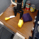 주요 결과를 알아보기 위해 3개의 장면에 걸쳐 15개의 작업에 대해 현실 세계의 GRIF 정책을 평가합니다. 주어진 명령어는 학습 데이터에 잘 표현된 명령어와 어느 정도의 구성 일반화가 필요한 새로운 명령어를 혼합하여 선택했습니다. 장면 중 하나에는 보이지 않는 물체의 조합도 포함되어 있습니다.