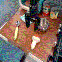 우리는 주방 조작 환경에서 label이 지정된 데모 7,000개의 경로와 label이 지정되지 않은 경로 47,000개가 포함된 Bridge-v2 데이터셋 버전으로 GRIF를 학습시켰습니다. 이 데이터셋의 모든 경로를 사람이 수동으로 주석을 달아야 했기 때문에 주석 없이 47,000개의 경로를 직접 사용할 수 있게 되어 효율성을 크게 개선할 수 있었습니다.