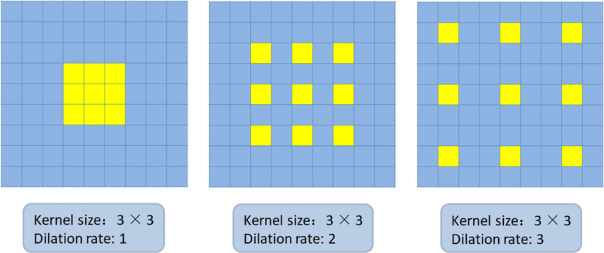 앞서 설명드린대로, Dilated Convolution은 기존의 Convolution에서 커널 내의 간격을 두어 적은 연산량으로 이미지를 바라보는 시야를 넓힐 수 있다는 장점이 있습니다.